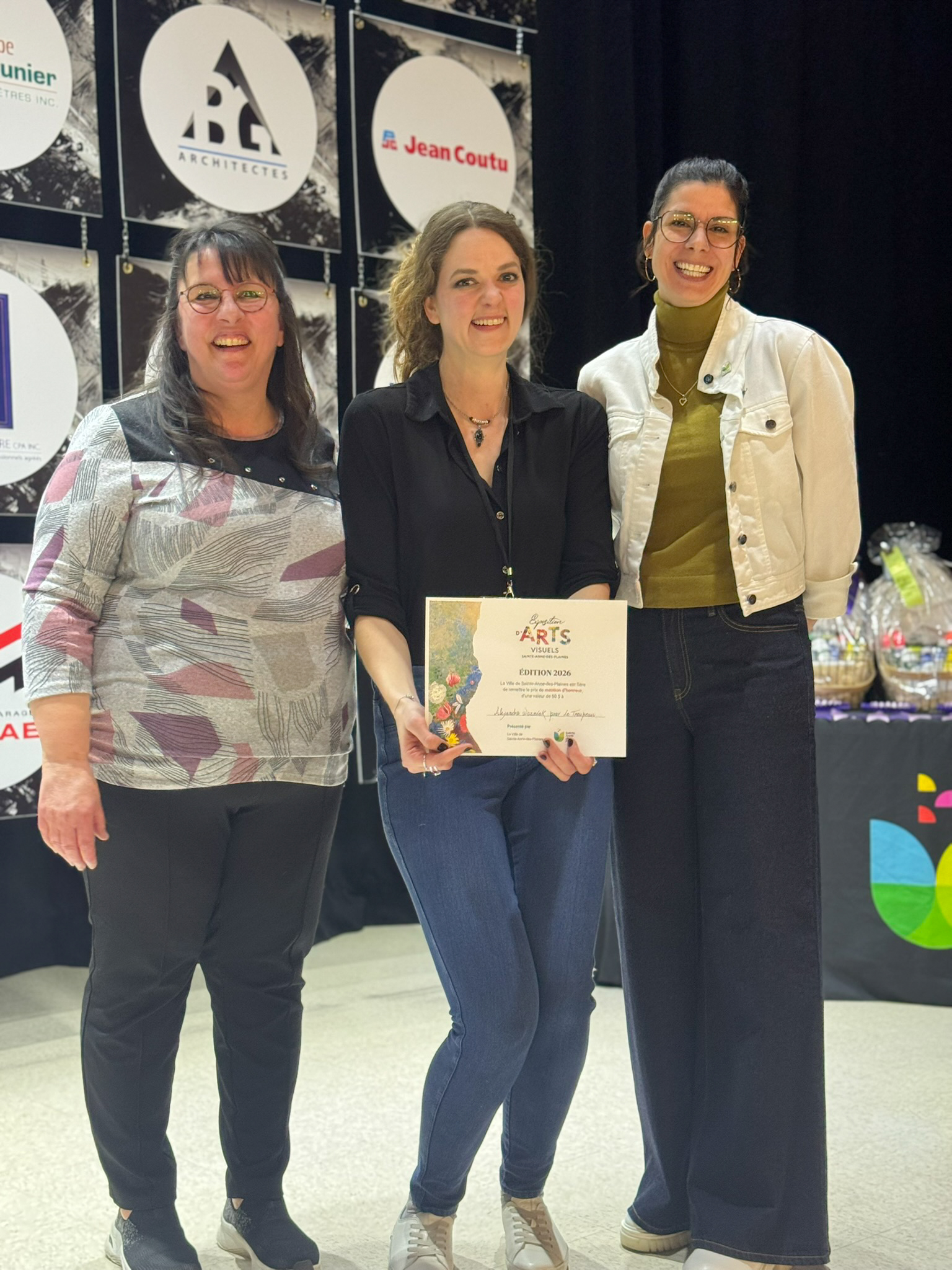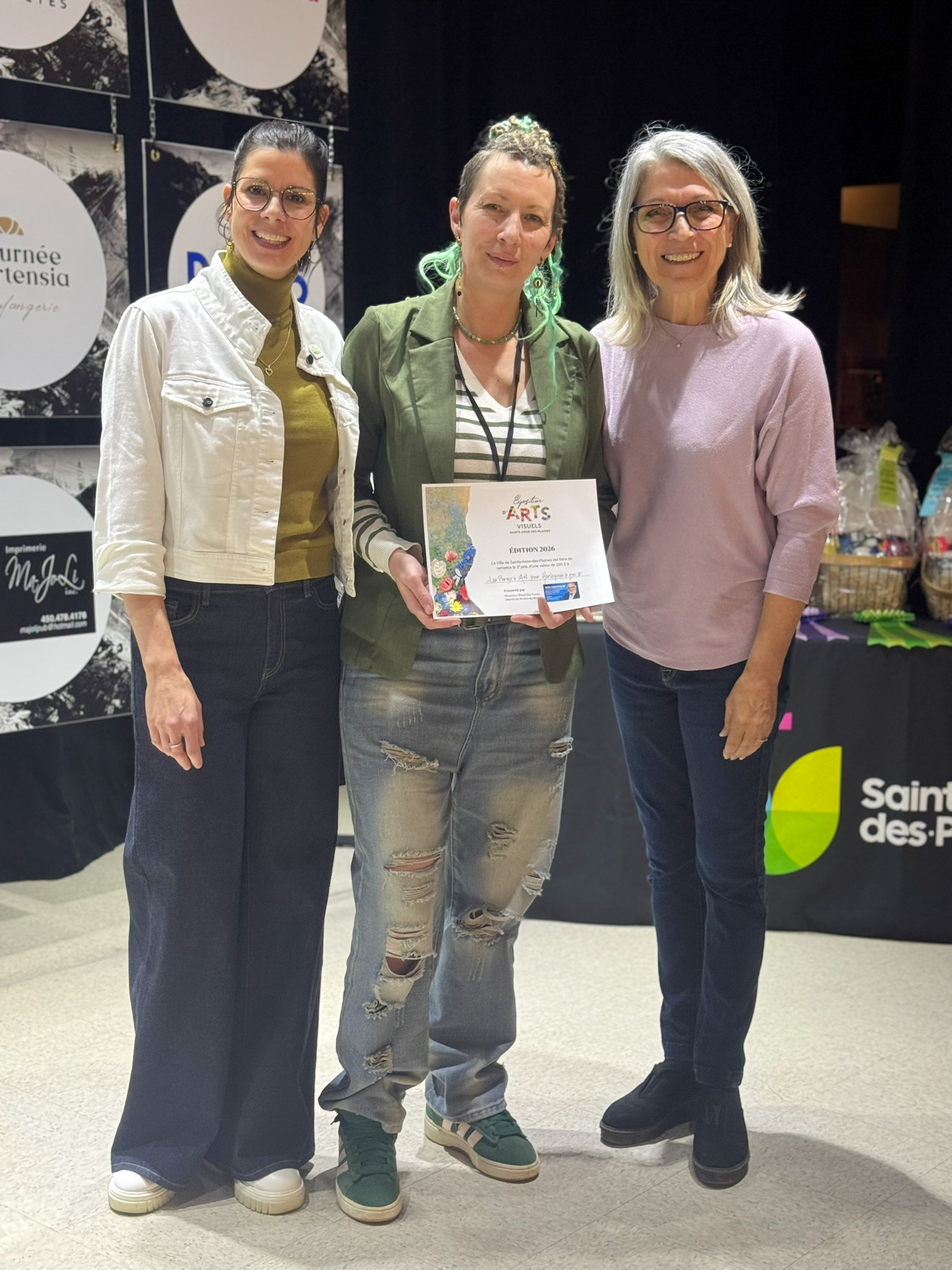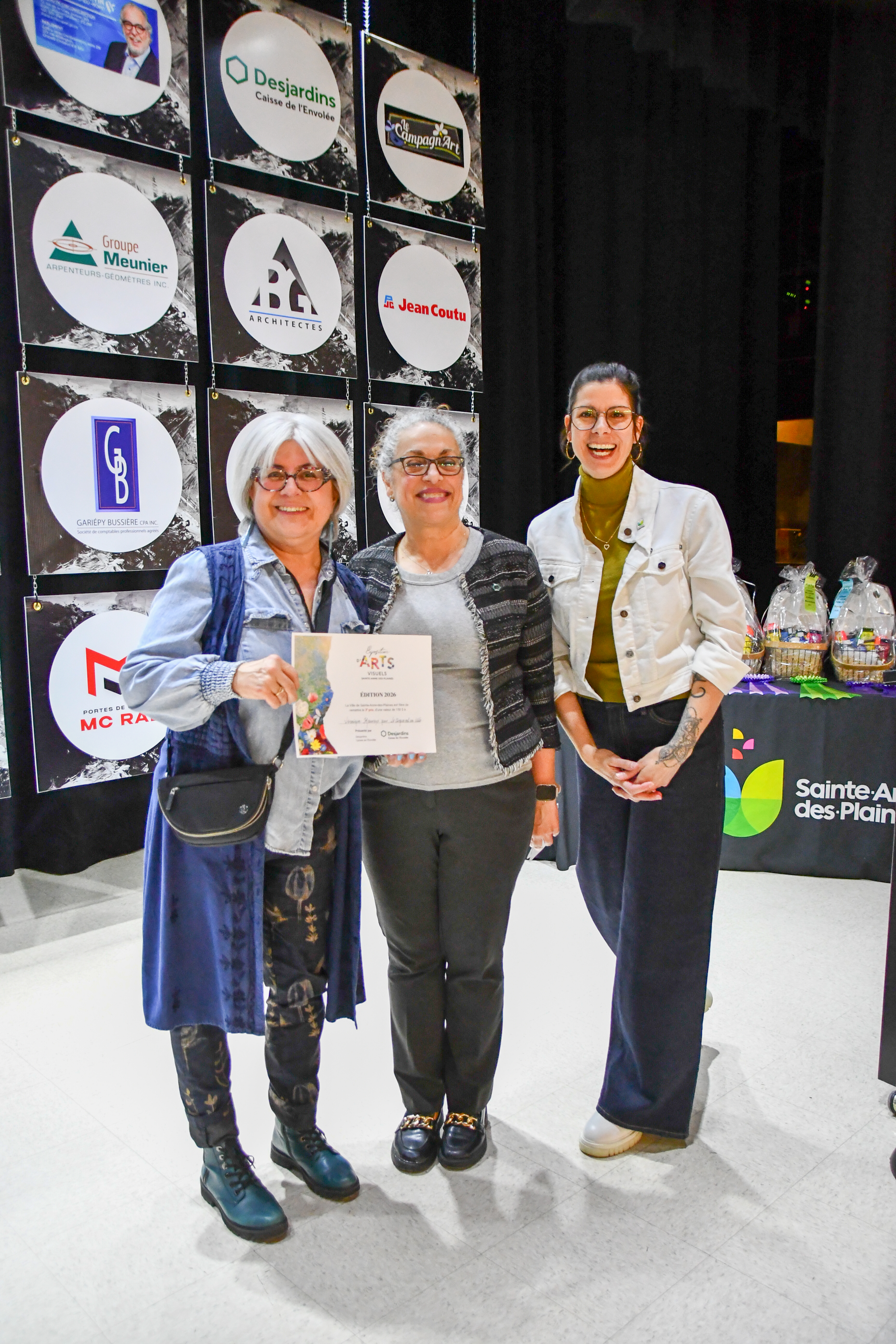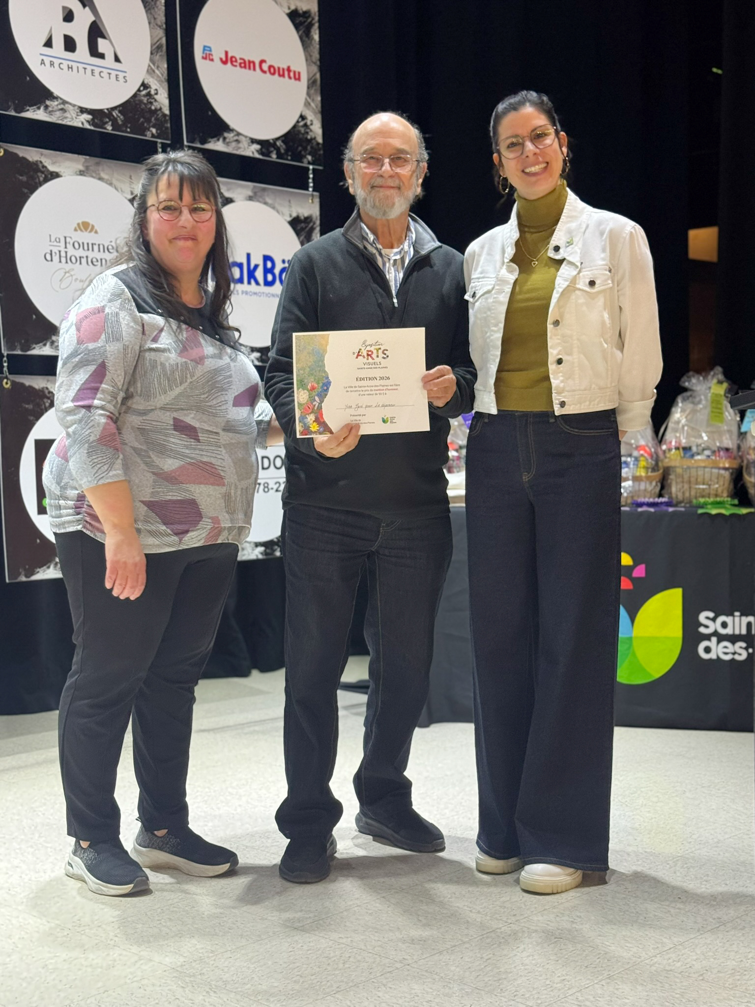 C’est en soirée samedi, lors d’un coquetel, que la remise de prix fut réalisée. La famille et les amis des artistes étaient présents afin de célébrer ce moment important. Les participants de l’exposition ont ainsi profité de ce moment pour échanger avec leurs convives avant le dévoilement des artistes récompensés par le jury. Ce sont mesdames Ginette Gilbert, photographe, Julie Duplantie, artiste peintre et monsieur Claude Tousignant, artiste peintre qui composaient le jury de cette édition.