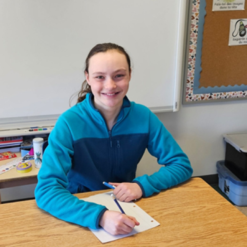 Les quatre finalistes, par la suite, ont participé à la finale de l’école. Notre grande gagnante a été Maélie Roy. Suite à cette compétition, Maélie a participé à la finale régionale de la dictée PGL. Elle était la fière représentante de l’école des Moissons.