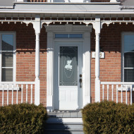 La demeure à deux niveaux d’occupation reprend les caractéristiques architecturales des maisons cubiques. Aussi est-elle caractérisée par un plan carré et un toit à quatre versants ou en pavillon, comme c’est le cas ici. Elle se distingue notamment par son revêtement traditionnel de brique rouge contrastant avec les éléments ornementaux en blanc, tels que les chambranles et les colonnes de la galerie. Les ouvertures sont disposées de manière symétrique en façade, afin de créer un effet d’équilibre. Une lucarne à croupe, ainsi nommée puisque couverte d’un toit à trois pentes, perce l’un des versants et éclaire les combles. Le sommet de la toiture est couronné par une balustrade de couronnement en fer forgé, typique des toits en pavillon. La balustrade n’a pas ici une fonction de garde-corps, mais ajoute à l’esthétisme et à l’ornementation de la maison. Enfin, le terrain de la demeure est délimité par une clôture traditionnelle en métal, un élément très rarement conservé sur les propriétés anciennes.