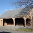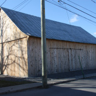 Derrière la maison se trouve la grange-écurie des Prêtres-Chaumont, construite peu de temps après l’édifice principal. Joseph Chaumont voulait disposer d’un bâtiment multifonctionnel au village permettant de répondre aux besoins de sa famille. On y retrouve ainsi une tasserie, vouée jadis à l’entreposage du grain en gerbes et du foin, une batterie où l’on battait le grain, une écurie où logeaient les chevaux, une glacière et une remise à voiture. Le prolongement du versant ouest du toit de la grange, qui créé son profil asymétrique, a permis l’aménagement, derrière une arcade, d’un portique ouvert. Ce portique était, quant à lui, utilisé pour dételer les chevaux et ranger les harnais. En 2012, la grange-écurie a été rénovée, mais l’immeuble a conservé son cachet historique. La maison et la grangeécurie des Prêtres-Chaumont sont classées monument historique en 1988.