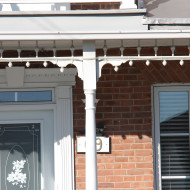 La maison a avantageusement conservé son ornementation en bois, comme les lambrequins, et en brique, comme les chaînes d’angle. L’effet de bichromie créé autour des fenêtres par le piédroit et la plate-bande ajoute également à l’esthétisme du bâtiment. Enfin, l’édifice est couronné par une imposante corniche moulurée concave qui longe la toiture. La corniche, en lattes de bois, s’avère un modèle plutôt rare à Sainte-Anne-des-Plaines