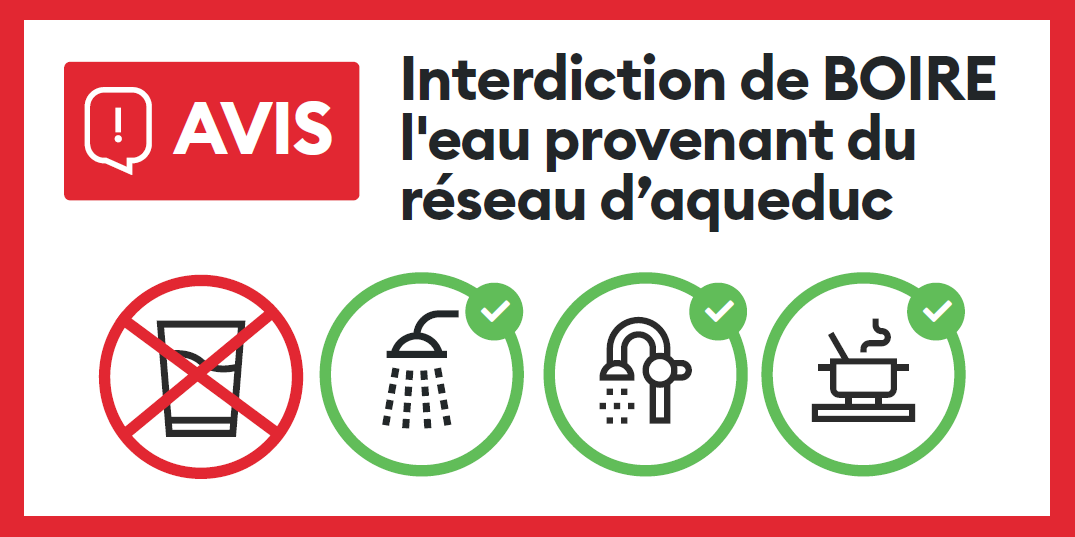 Interdiction de BOIRE l'eau provenant du réseau d'aqueduc