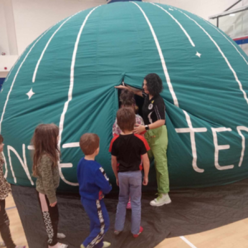 Le spectacle immersif Sherloconte plonge les jeunes au cœur d’une histoire d’enquête interactive qui se déroule dans la Tentaconte, un dôme gonflable où sont projetés des décors en 360˚.